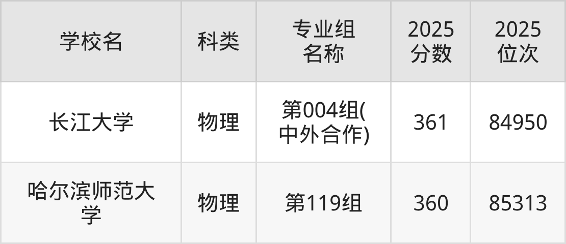 以黑龙江物理类为例,361分能上的一本大学有长江大学(位次排名84950名)、哈尔滨师范大学(位次排名85313名)。