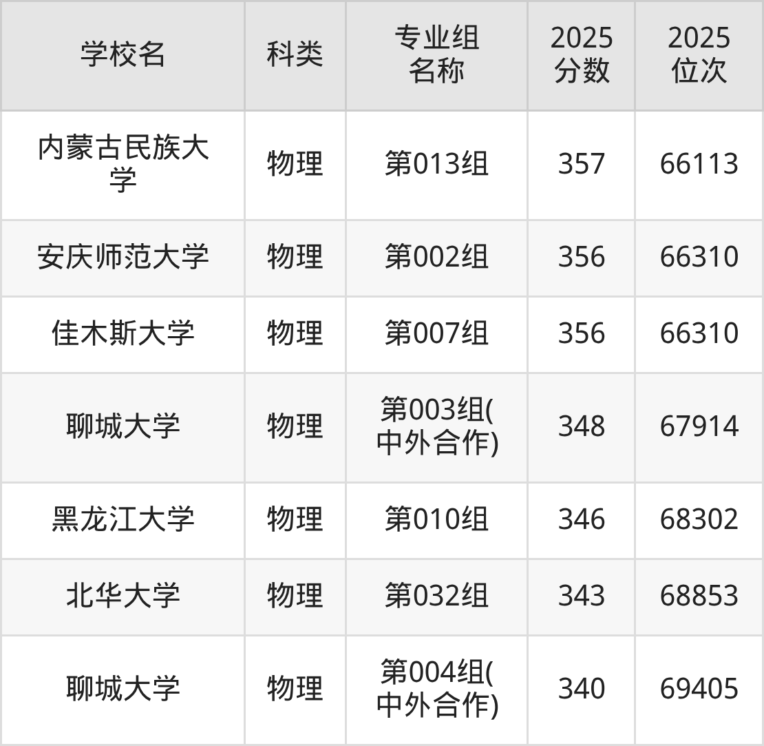 下面是吉林物理类361分能上的一本大学排名一览表: