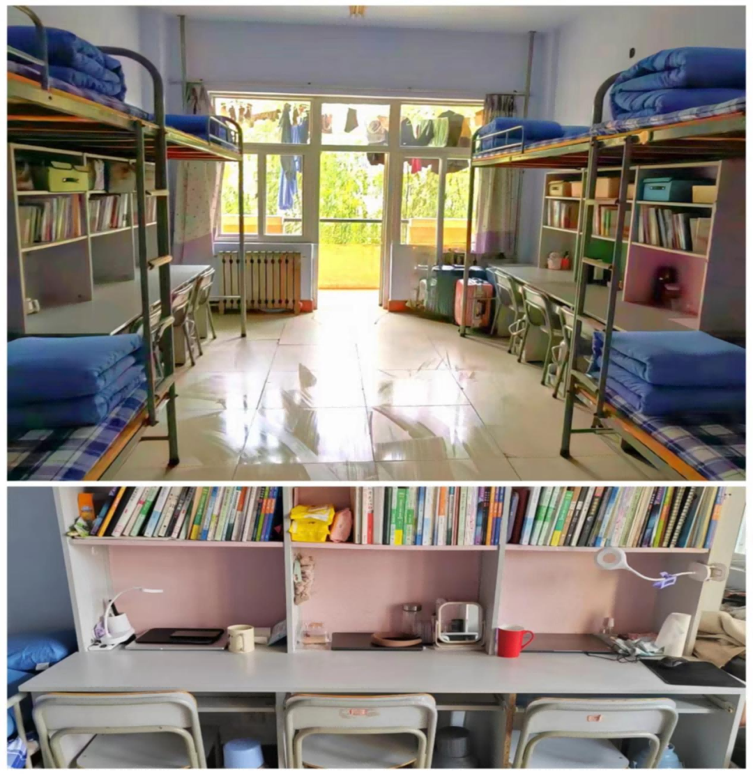 学校宿舍以 六人一间 为标准配置,采用 上床下桌 设计,为每位学生预留独立学习与储物空间,有效提升居住舒适度。宿舍内配备 独立卫生间,日常起居更为便捷;每层楼道均设置 公共饮水机 与 洗衣机,满足基础生活需求;宿舍楼七层专设公共浴室,为学子提供洗漱便利。校园内分布着 4