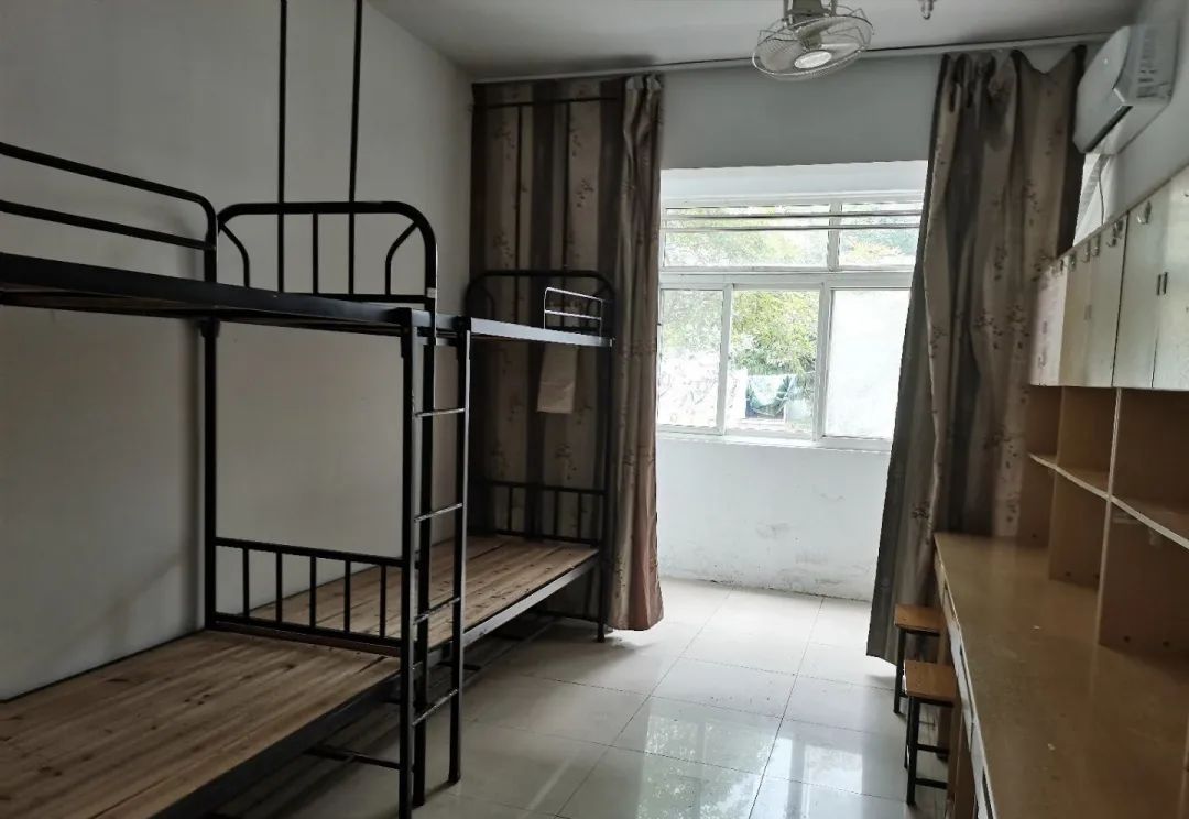 42 号楼:上下铺四人间,独卫独浴,床位间距适中,卫浴设施维护到位,居住舒适度较高。