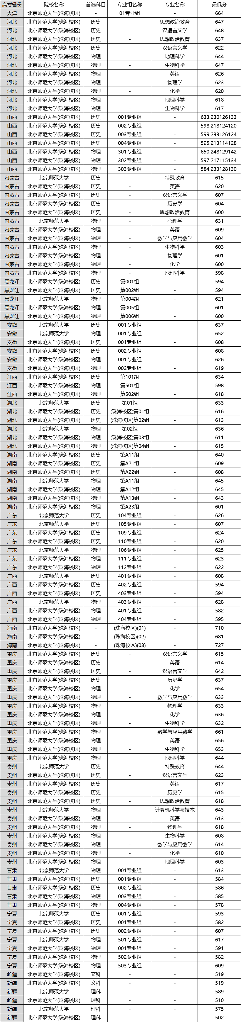 非军检院校:北师大组104为626分,组105为607分;珠海校区组109为624分,组110为620分