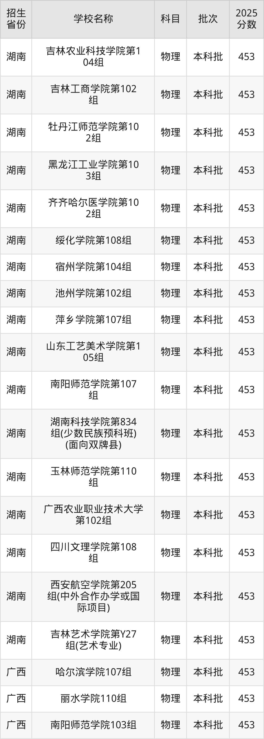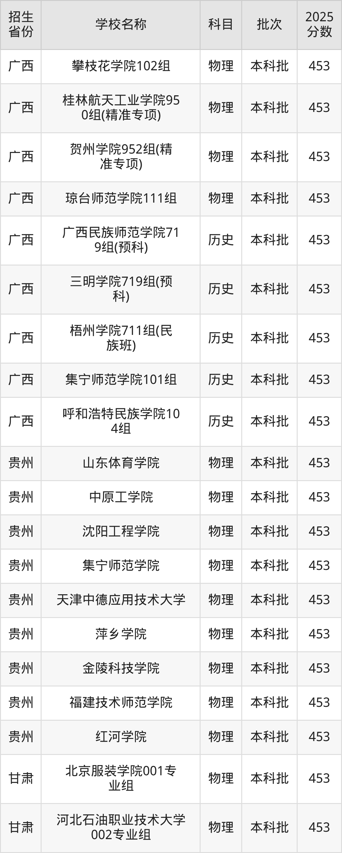 一、453分能上什么大学筛选全国各省2025年录取分数线为453分的二本公办大学如下: