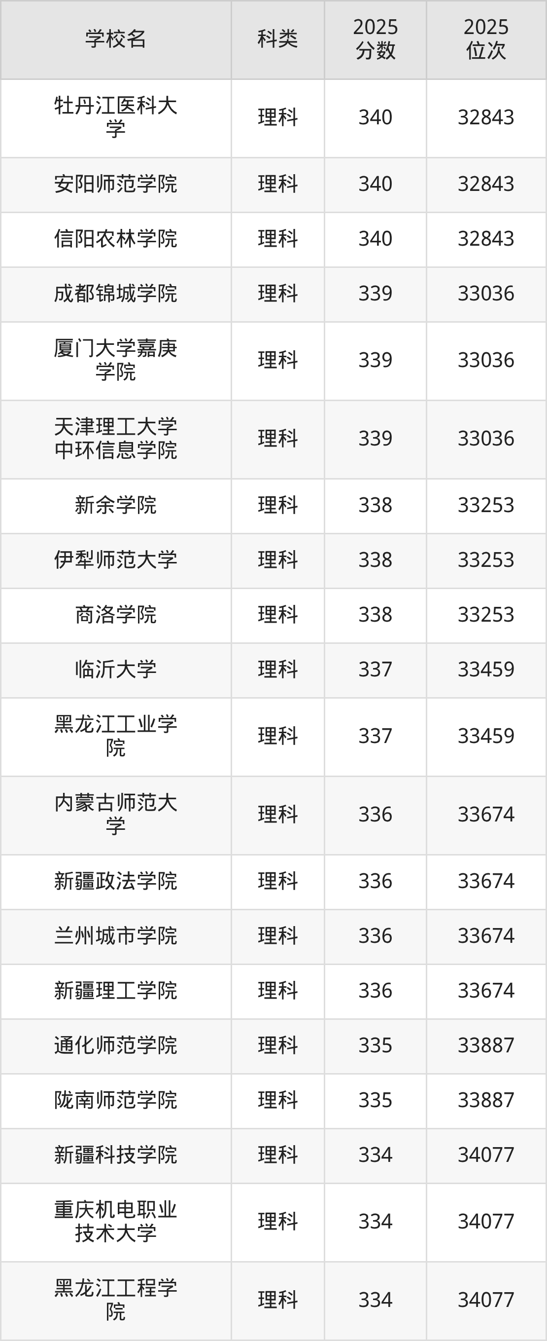 下面是新疆理科340分能上的二本大学排名Top20一览表: