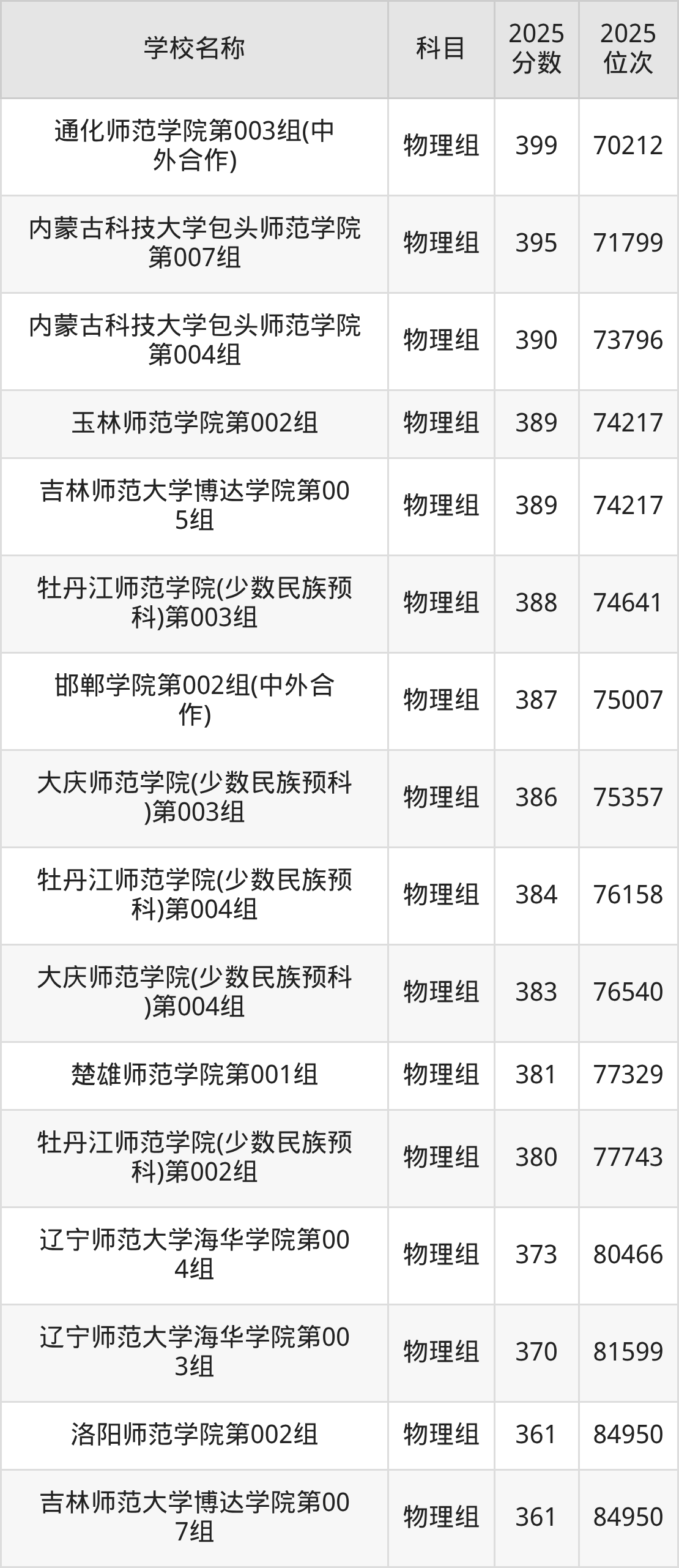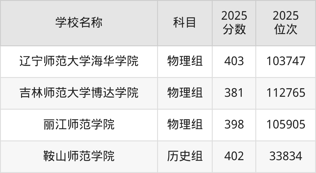 辽宁高考物理组共有3所二本师范大学在350到420分之间录取,包含辽宁师范大学海华学院、丽江师范学院、吉林师范大学博达学院。