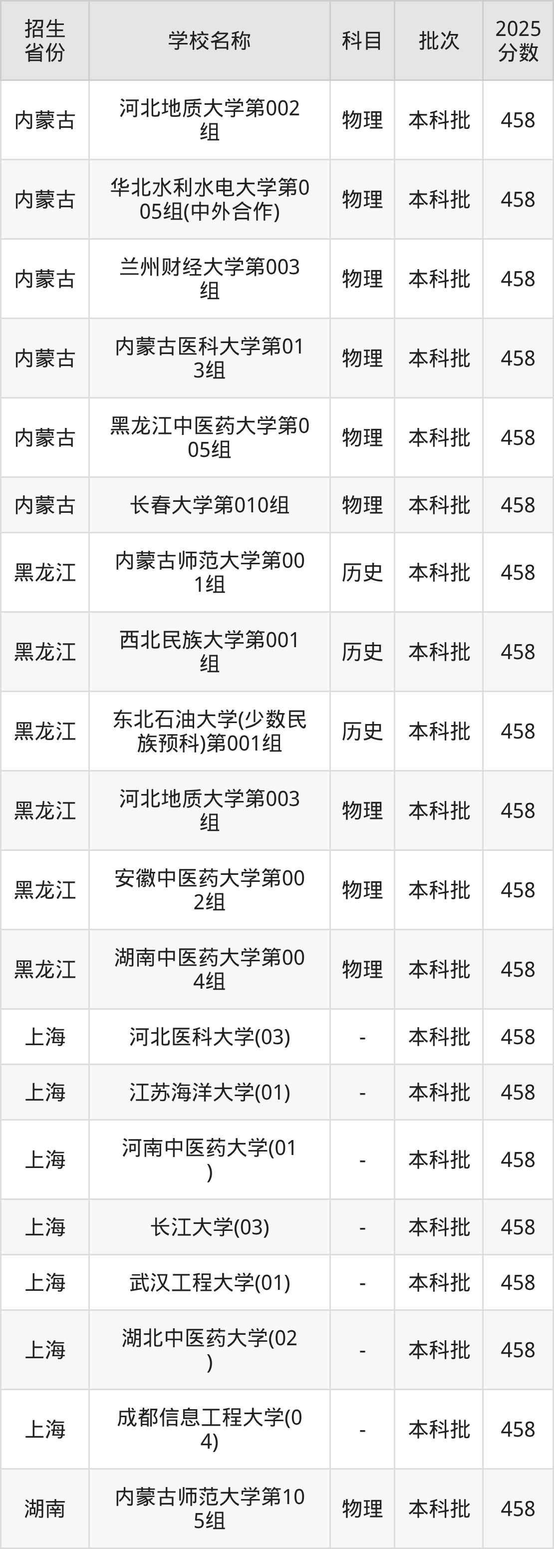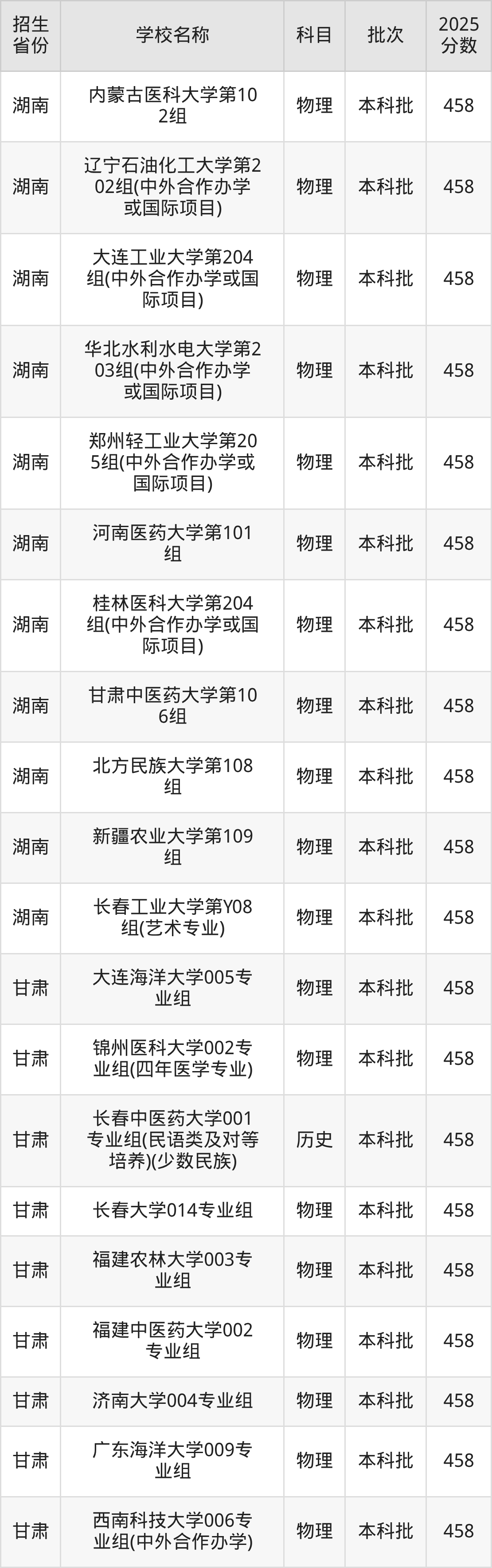 二、各省458分的一本大学名单1.湖南高考
