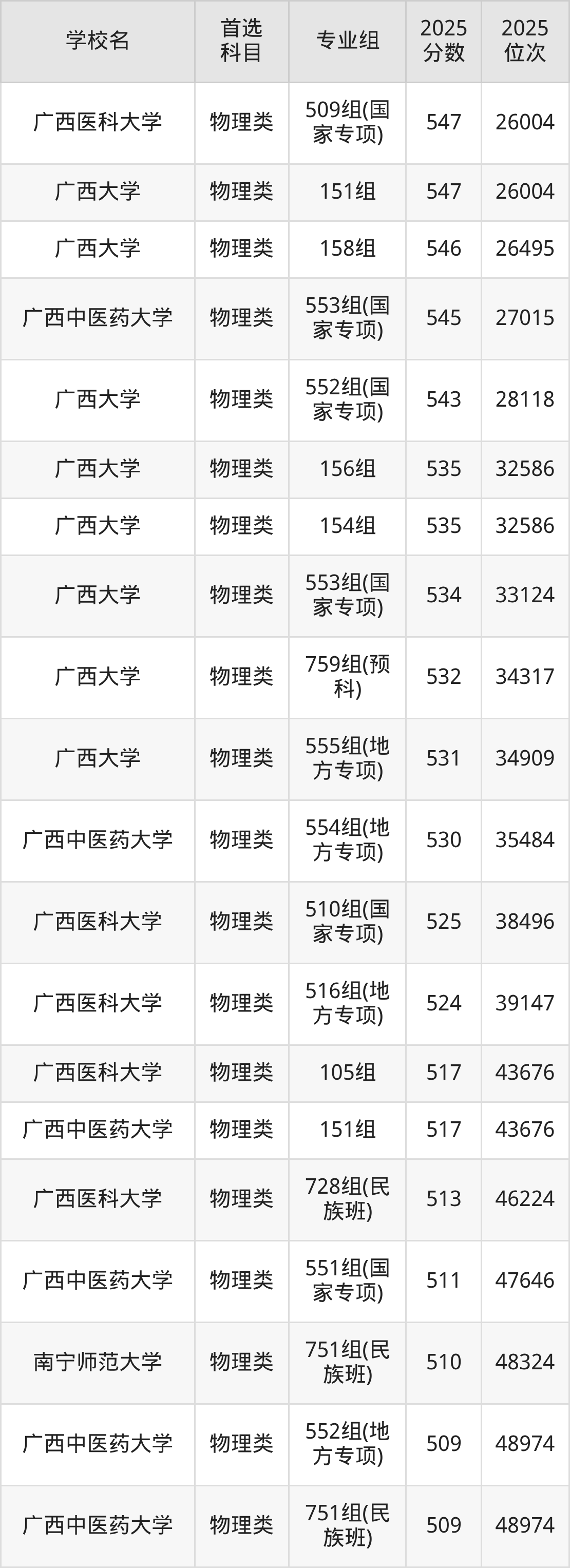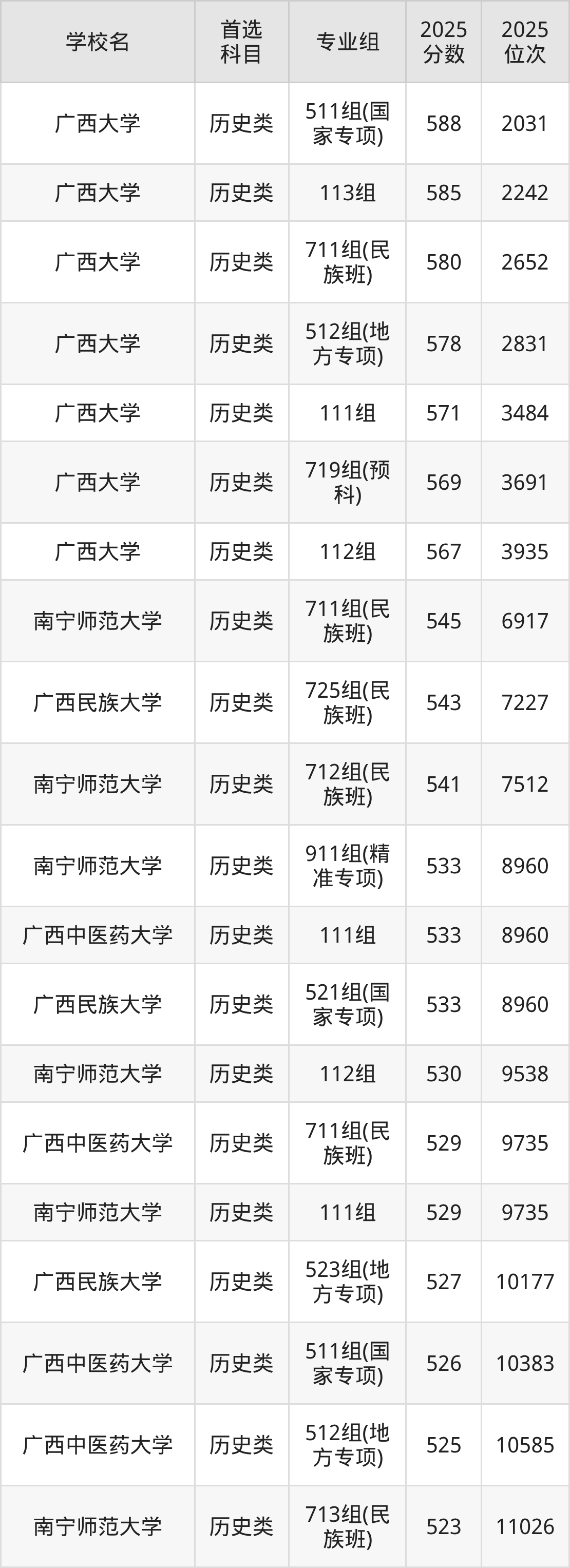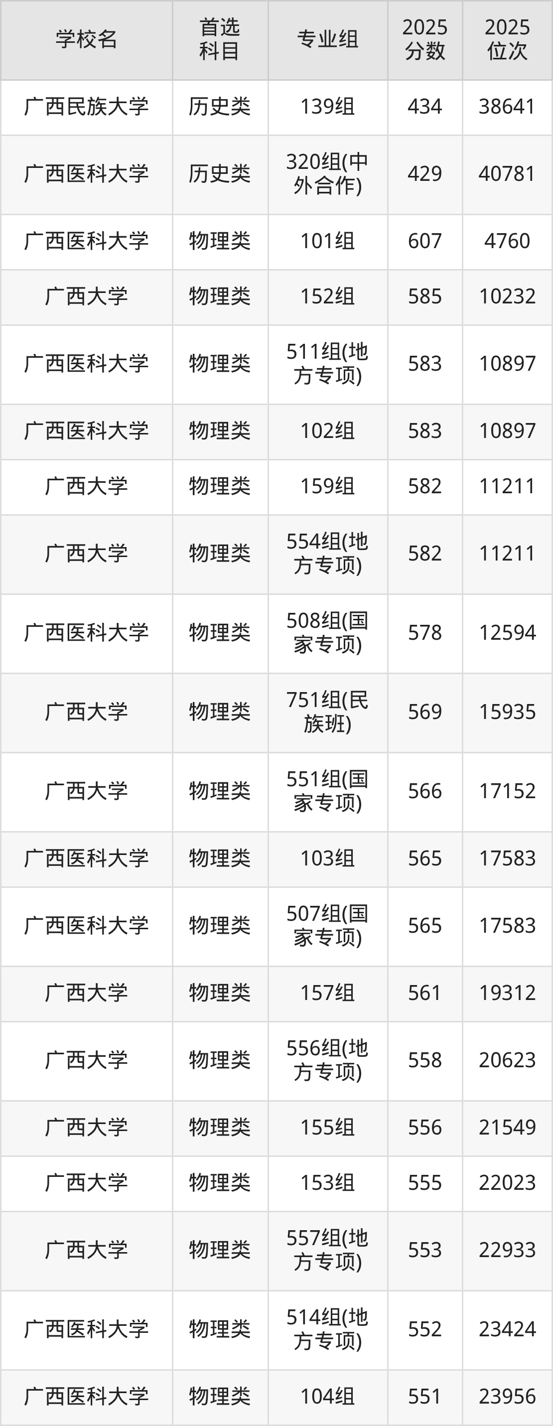 (3)广西医科大学511组(地方专项):583分、10897名;