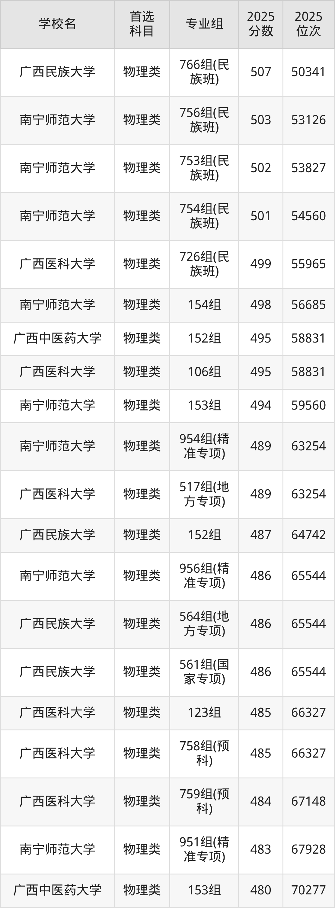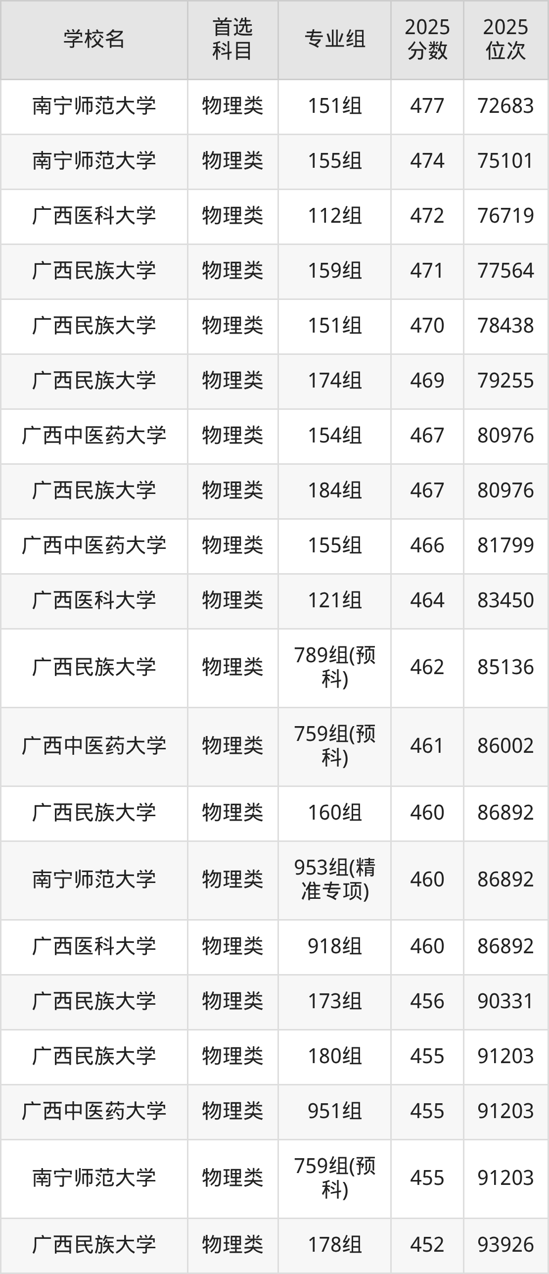 2025年广西本科批次线历史类402分、物理类370分。因此南宁考生如果想留在市内读一本大学的话,历史类考生至少需要过线27分、而物理类考生至少需要过线22分。