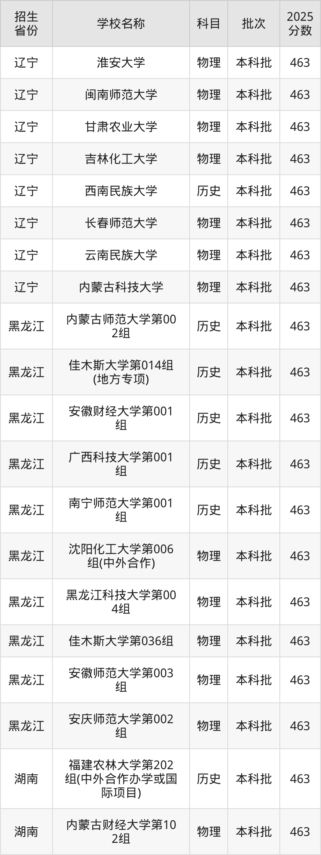 一、463分能上什么大学筛选全国各省2025年录取分数线为463分的一本大学如下: