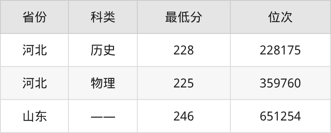 2025年山东工程职业技术大学工商企业管理专业在河北录取最低分:历史组是228分,对应位次排名是228175名;物理组是225分,对应位次排名是359760名。