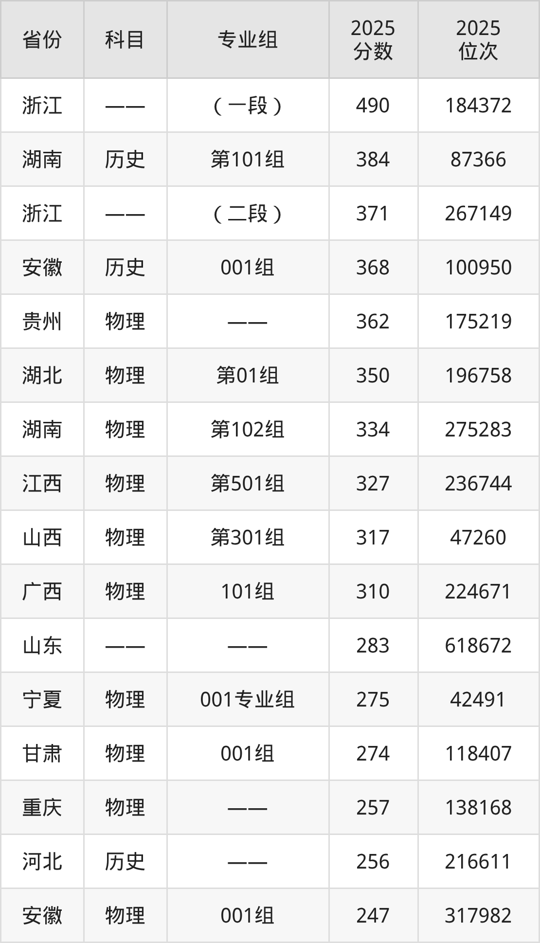 三、硅湖职业技术学院2025年录取分数线下面是2025年硅湖职业技术学院在全国各省录取最低分数据及位次,各位考生也可作为一个参考。