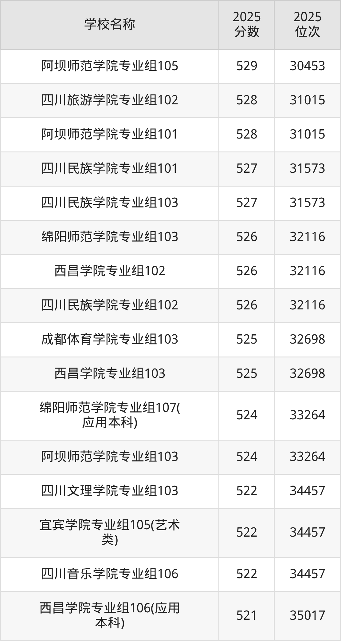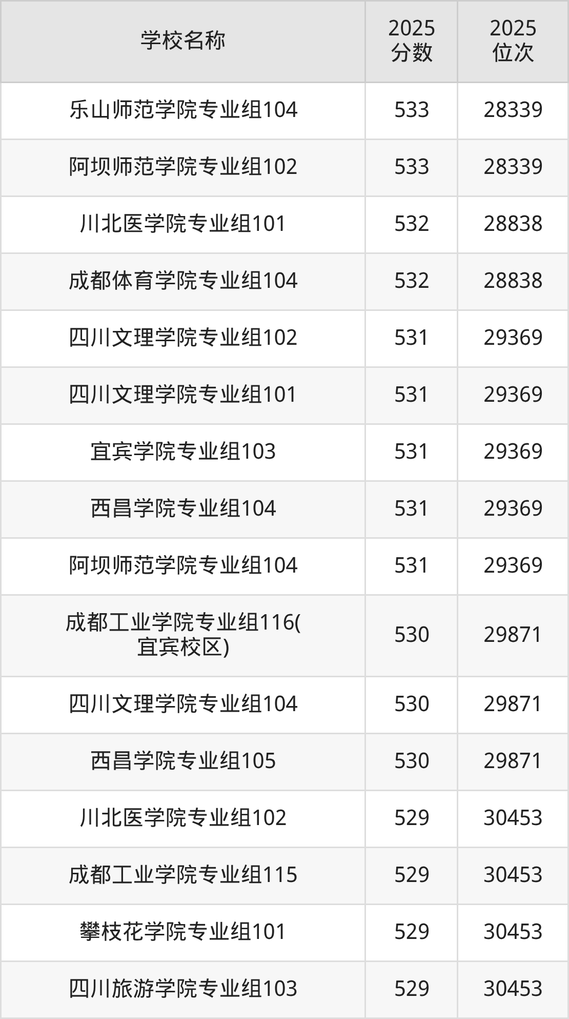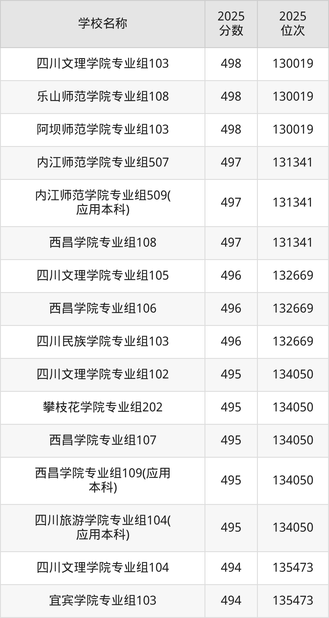 下文为2025年四川省公办二本大学在四川历史类录取分数线和位次排名表,供大家参考: