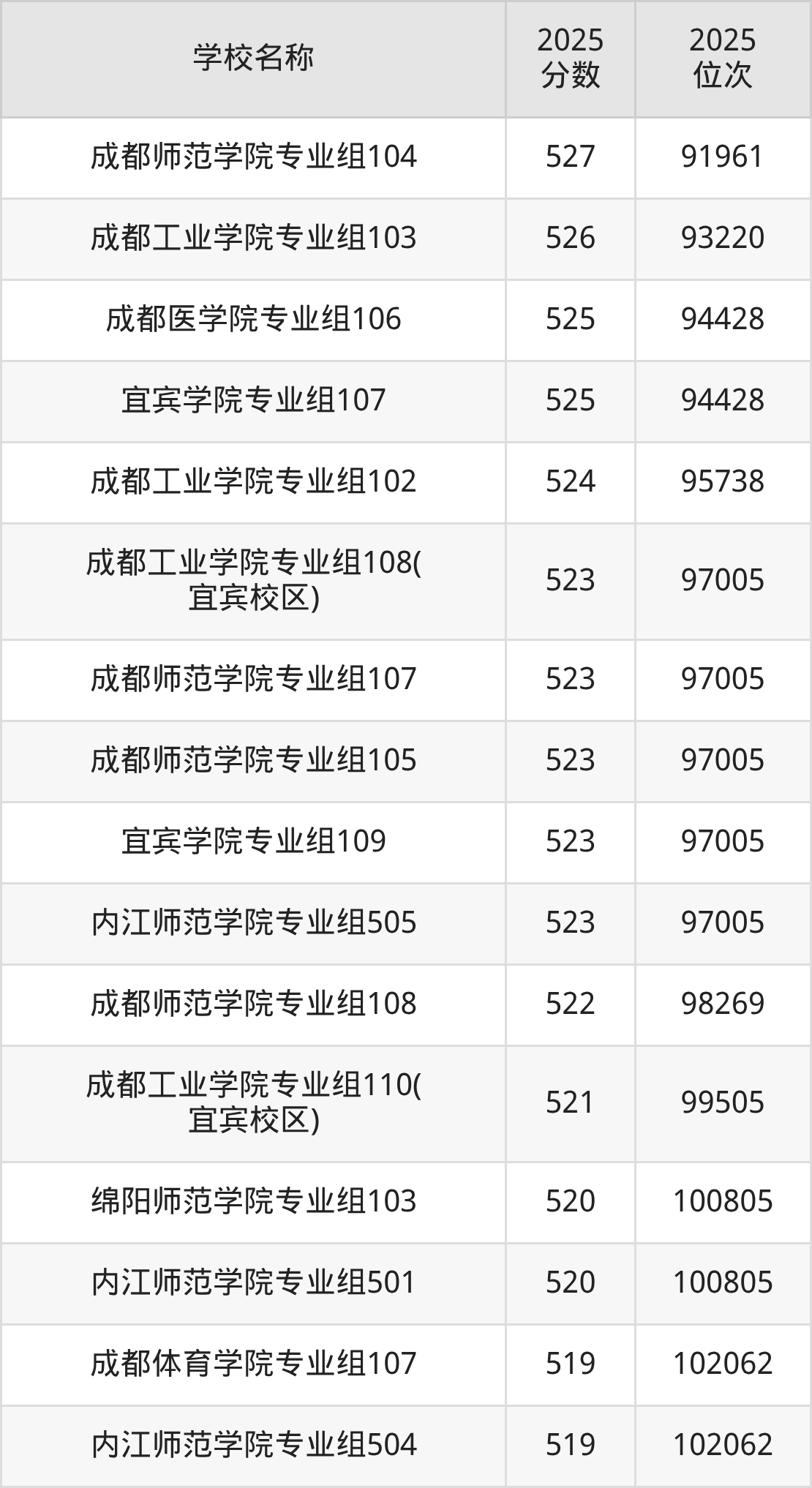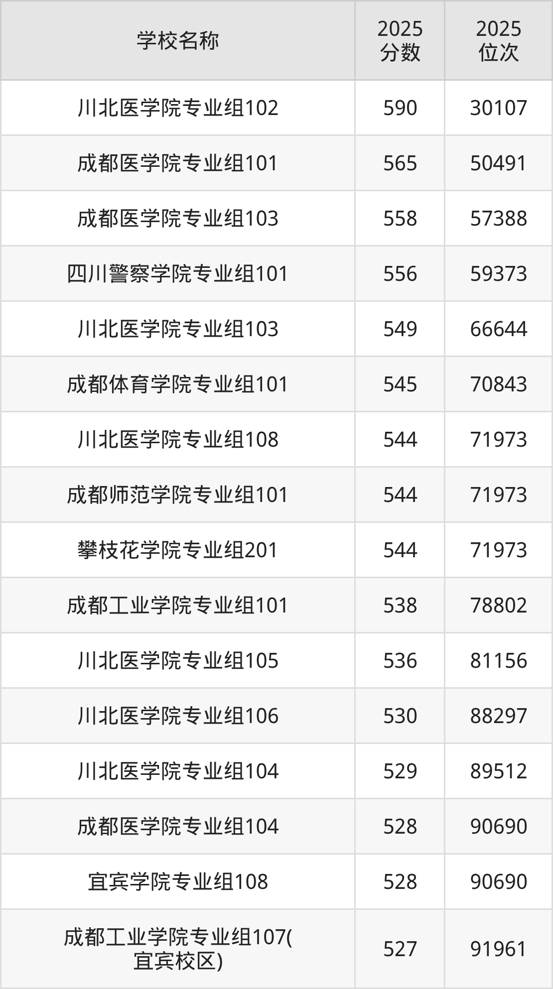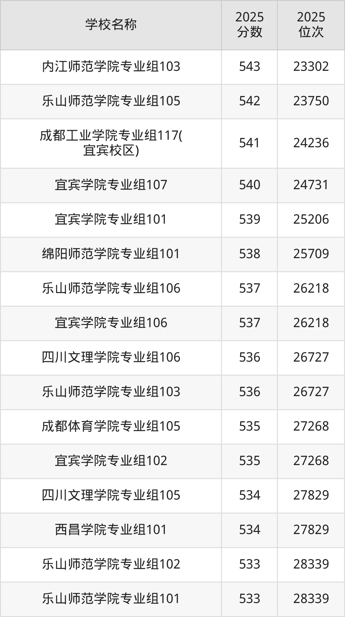 下文为2025年四川省公办二本大学在四川历史类录取分数线和位次排名表,供大家参考: