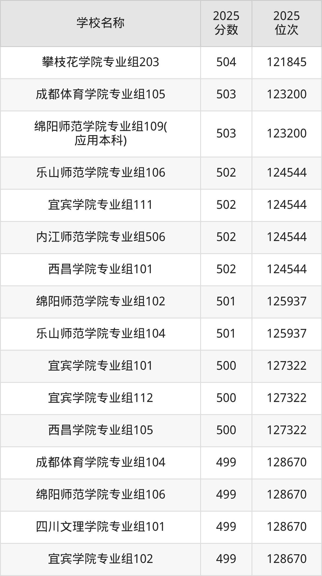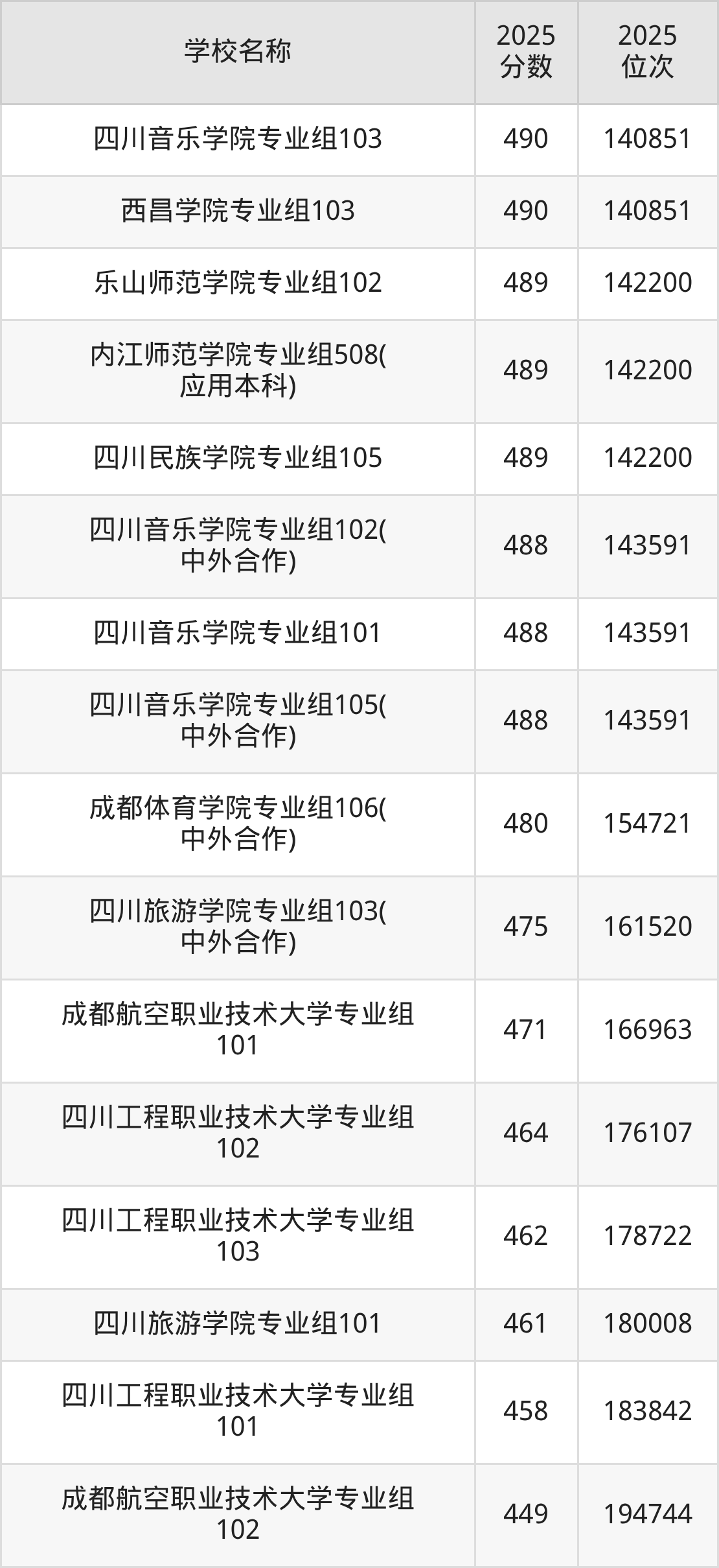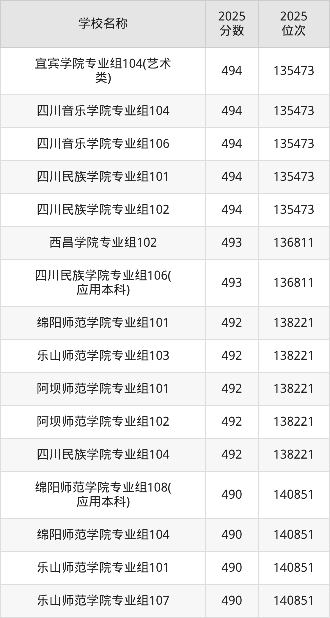 下文为2025年四川省公办二本大学在四川物理类录取分数线和位次排名表,供大家参考: