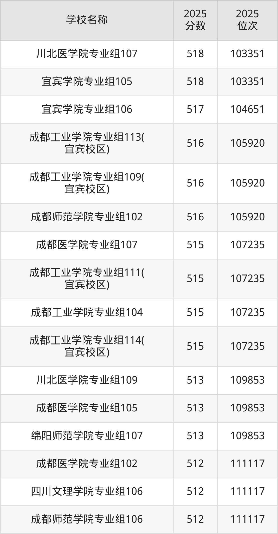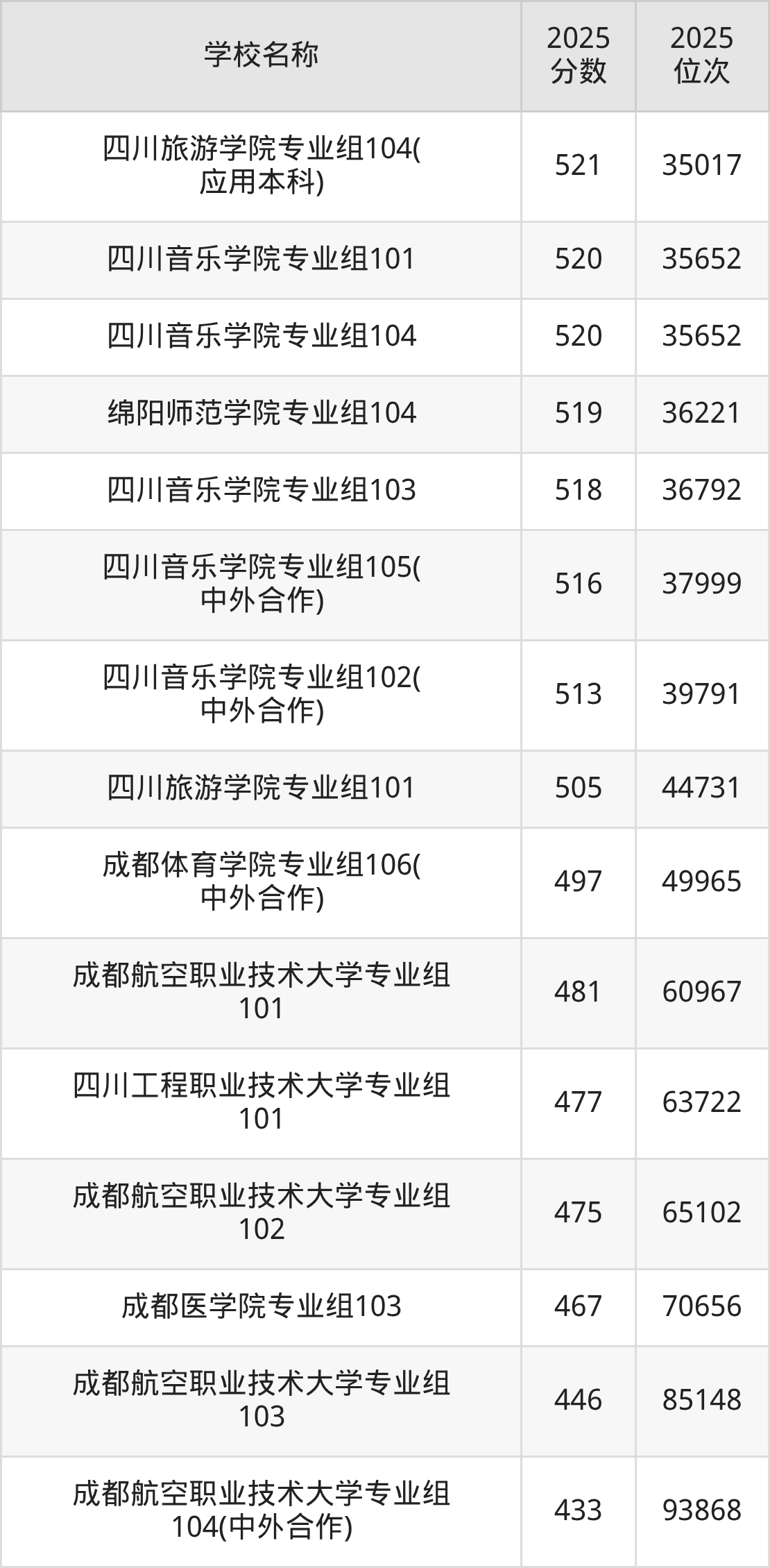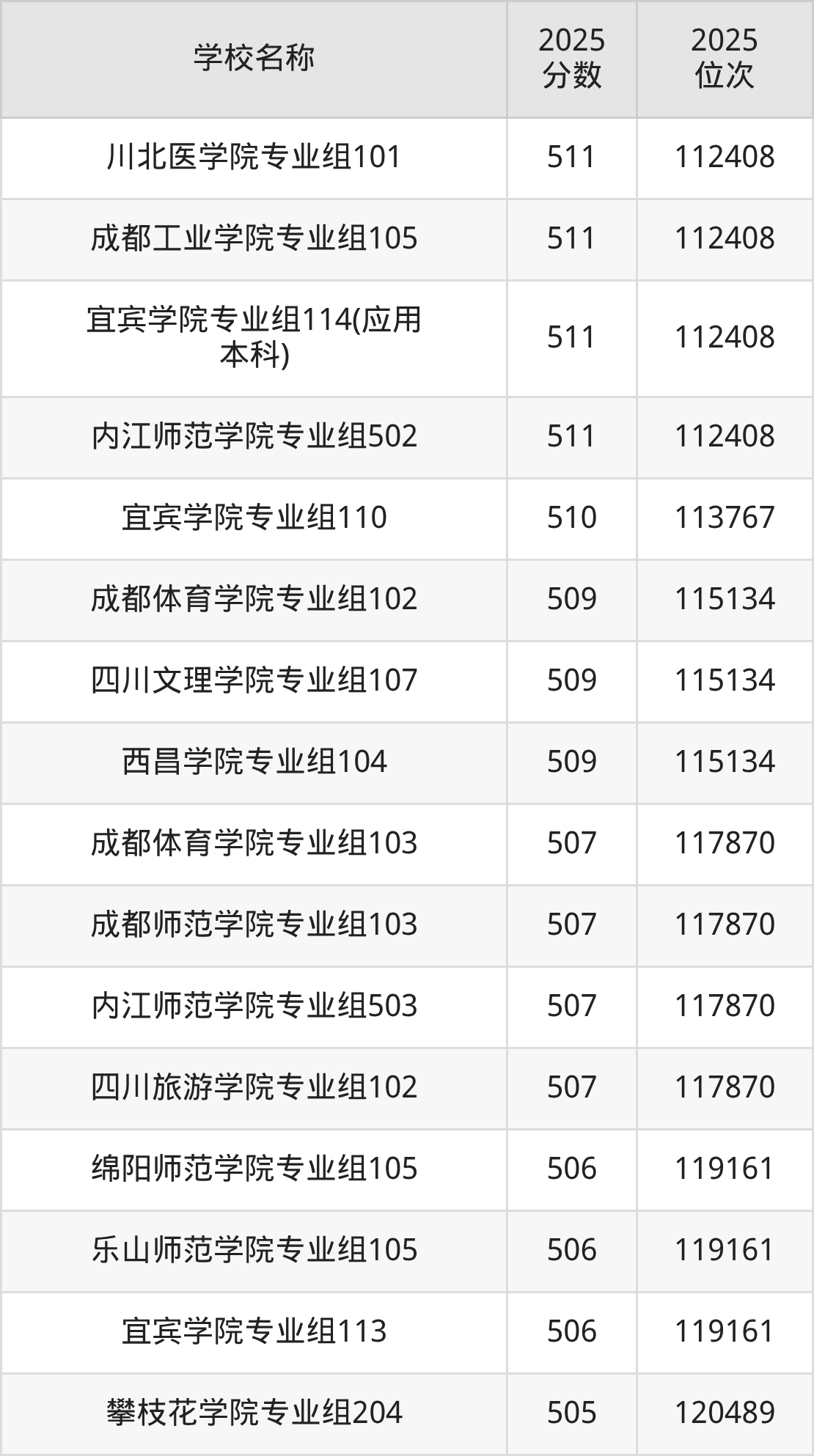 下文为2025年四川省公办二本大学在四川物理类录取分数线和位次排名表,供大家参考:
