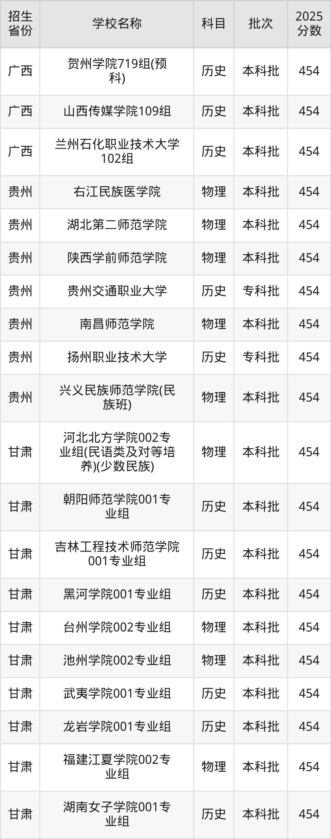 一、454分能上什么大学筛选全国各省2025年录取分数线为454分的二本公办大学如下: