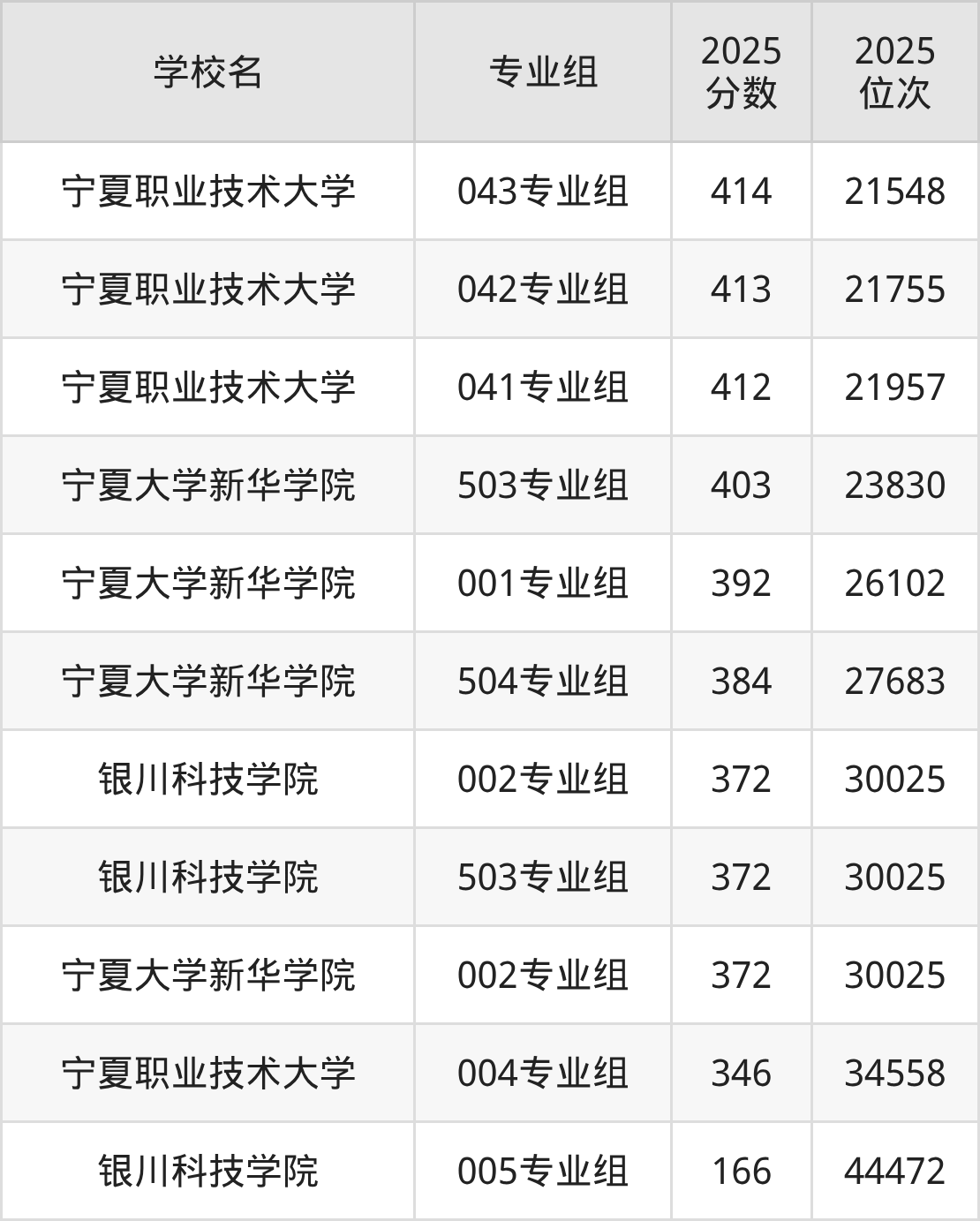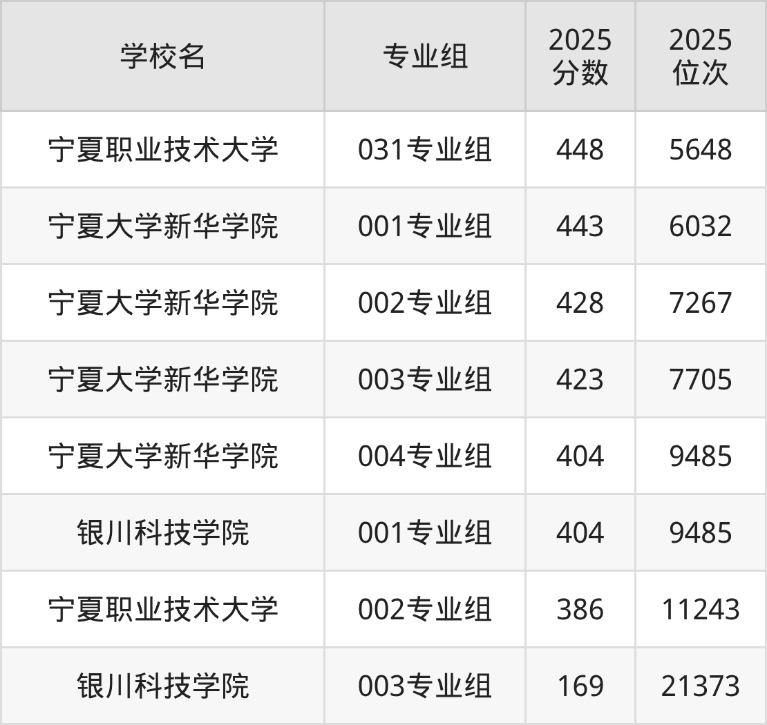 宁夏回族自治区所有二本综合院校2025年录取分数线一览表: